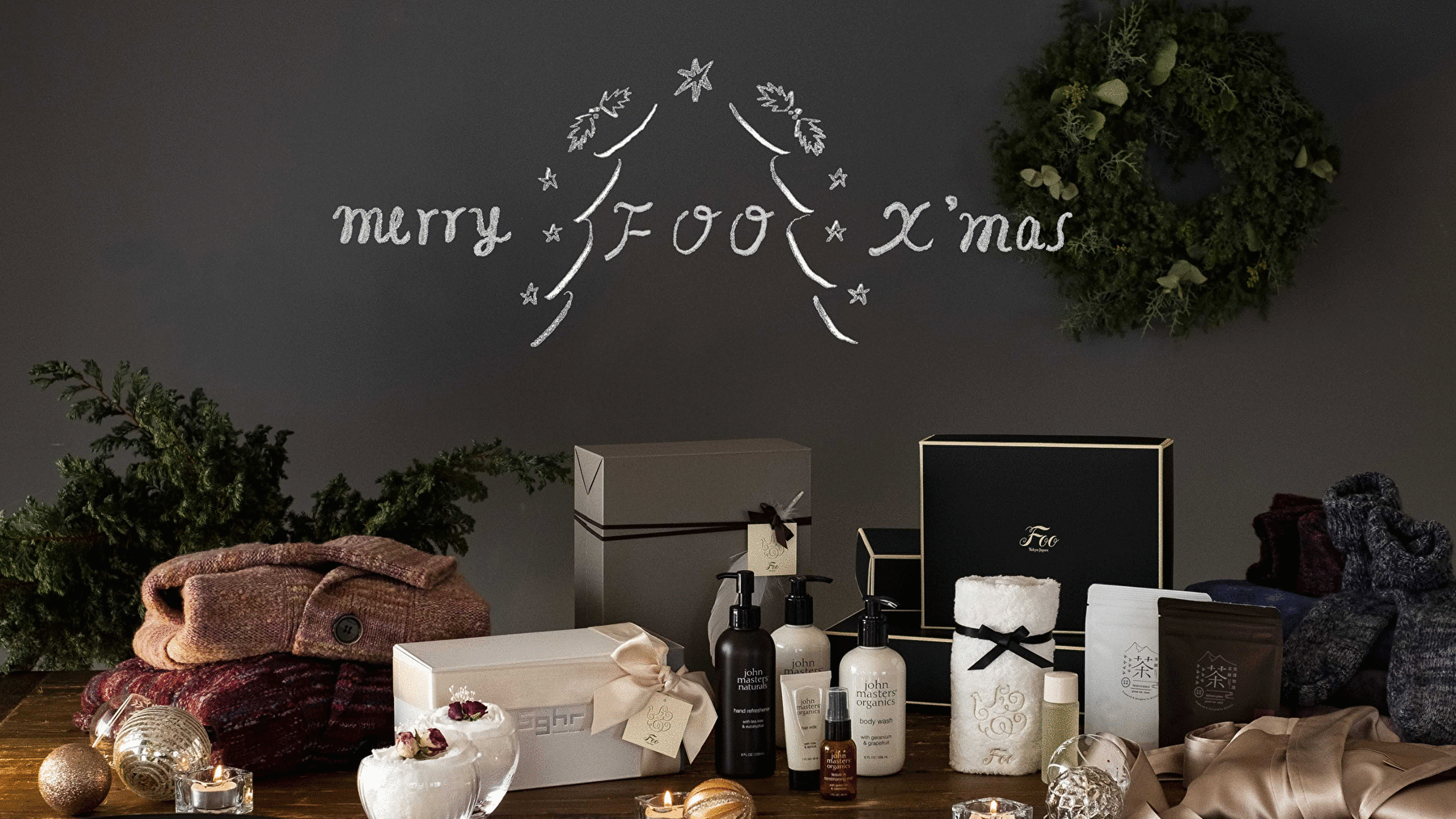 Foo Tokyoがクリスマスシーズンを迎えるのは2回目となりますが、ホリデーコレクションの新作発表は今回が初めてです。創業時から「上質なおうち時間」をご提供するために運営を続けておりますが、「おうち時間の過ごし方」や「癒やしのひととき」はお客様それぞれ異なると考えています。 そこで、今回のホリデーコレクションは、お客様それぞれの「くつろぎの時間」の過ごし方に合うアイテムをお選びいただこうと考え、カテゴリの違う3つのブランド(ジョンマスターオーガニック様・美濃加茂茶舗様・Sghr スガハラ様)とコラボレーションしたオリジナルギフトアイテムをお作りしました。