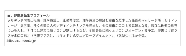 お腹すっきりやウエストの引き締めなどに効果的!アンチエイジングサロン「ソリデンテ」の小野先生考案のマッサージ法「ミオドレナージ」が、おうちでもできる付録付きムック本