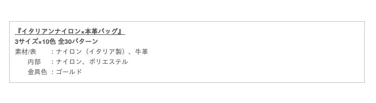 【特長1】世界の一流ブランドから認められた、しなやかなイタリア製ナイロンを贅沢に使用