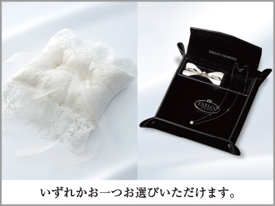 マリッジリングをご成約いただいた方に、ヨーロッパの高級レース使用の「リングピロー」または「ジュエリートレイ」をプレゼントいたします。