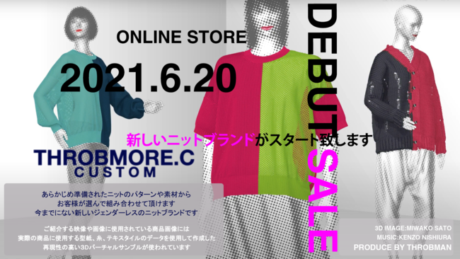 株式会社スロブモア.C(東京都港区北青山、代表取締役:佐藤美和子 TEL:03-6874-8455)は、リアルとバーチャルの融合を図った新たなデジタルファッションストア<THROBMORE.C>の ONLIE STORE を 6/20 スタート致しました。