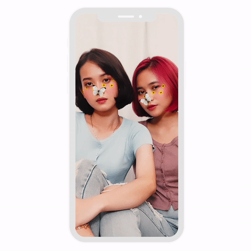 頬や鼻に散りばめられたペイントが可愛いシンプルなエフェクト。 美肌と小顔、そしてデカ目も適応されてプリクラに近い仕上がりになる。