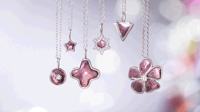 プラチナ900 と K18パープルゴールドが溶け合い、軽くて丈夫な可愛いジュエリーが誕生しました。この二つの金属が交わることから、「紫 KIZUNA」のブランド名となり、人と人との絆を感じ取れます。
