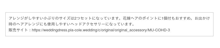 購入サイト:https://weddingdress.pla-cole.wedding/c/original/original_accessory/MU-COER-2