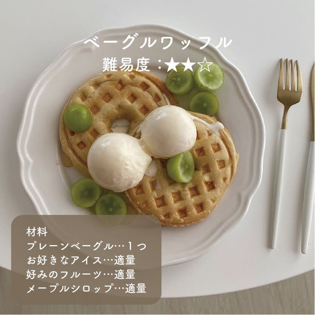 ワッフルメーカーでベーグルをプレスして作るおやつベーグル。