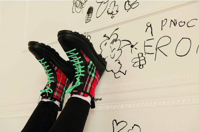 「ソフトパンク」は、“既存への対抗”を発してきたパンクカルチャーからインスピレーションを得て、カンペールらしく表現。21世紀のパンクの美学を象徴とする大胆なひねりを加えたチャンキーな防寒シューズや、タータンチェックのパッチワークなど冬らしいテクスチャーとデザインの個性的シューズが揃います。