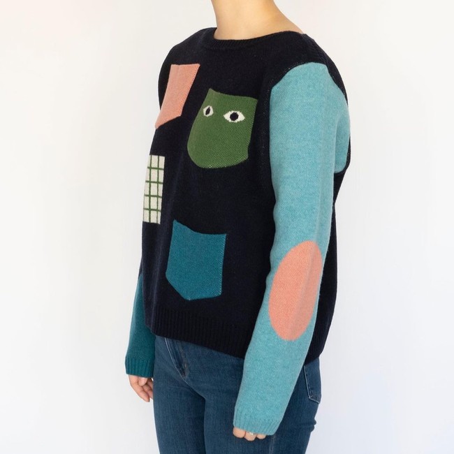 ドナ自身も、ラムウールを変わった色の組み合わせで楽しむのが好き!と話すように、彼女のニットアイテムはどれも魔法のような配色。上質なニットを身にまとう気持ちよさを感じるのはもちろん、独特なテキスタイルデザインにも注目です。