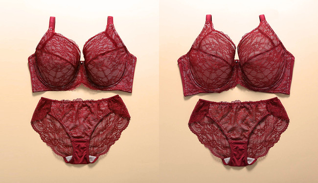 カップパターンは、バストをおおう面積を大きくしたフルカップタイプ、デザインは、ご要望の多かった「大人系シンプルなレース」を採用。