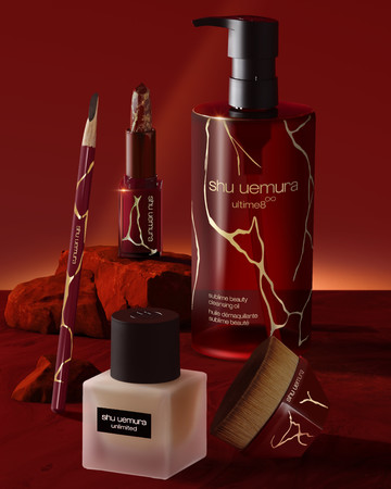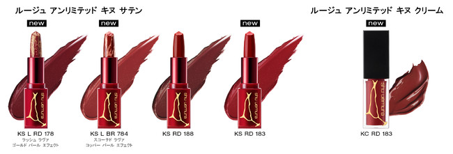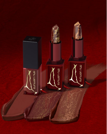 新年を祝し、シュウ ウエムラを代表する3つのアイコンアイテムが華麗なルージュ アンリミテッド ラッシュ ラヴァ レッド コレクションのデザインで登場。