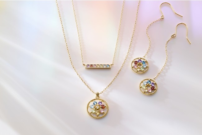 それぞれ「希望」や「豊かな愛」など前向きな石言葉を持つ、7色の天然石をあしらったアイテムが登場。色とりどりに煌めく7色の天然石が、災いから身を守り、身に着ける人を幸運へと導きます。