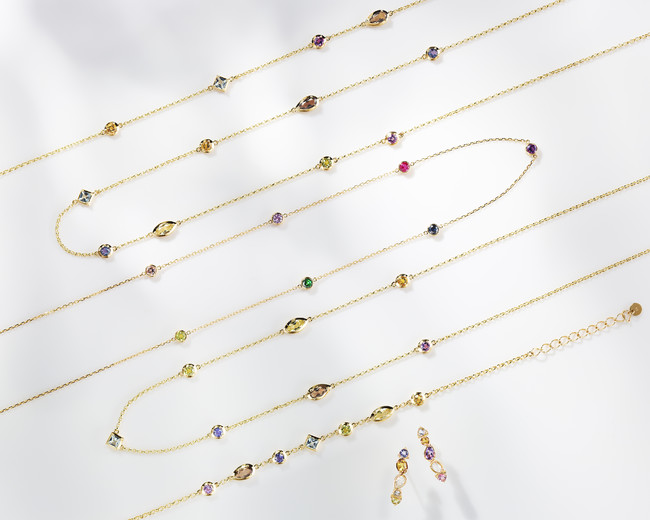 繊細なチェーンとカラーストーンの存在感がおしゃれな印象のジュエリーです。
