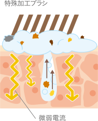 ブラシ1本1本に微弱電流を流し、なかなか取り切れない毛穴の奥の汚れまで吸着して取り除きます。