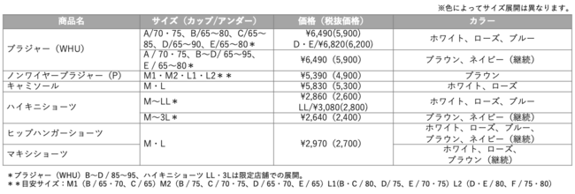 カップもストラップも自由自在に伸縮し、ワイヤー入りでもラクな着けごこちのブラジャー(WHU)は、体の動きにぴったりフィットし、自然なシルエットを演出するソフトストレッチカップを採用。圧倒的なここちよさのノンワイヤーブラジャー(P)は、カップ脇に伸びない加工を施し、自然でありながらすっきりとしたシルエットを演出します。