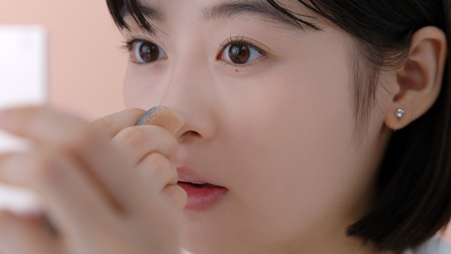 すっぴんでいるかのような軽い使用感なのに、気になる毛穴はひとぬりでカバーすることから「すっぴんチートパウダー」と言われる新パウダー。実際にご自身の小鼻に塗って、素肌そのものがきれいになったかのようなナチュラルな仕上がりを確認し、思わず笑顔をこぼします。最後に「すっぴんチートパウダー」を纏って「超写りいい」とつぶやく、森七菜さんの貴重な自撮りシーンも必見です。