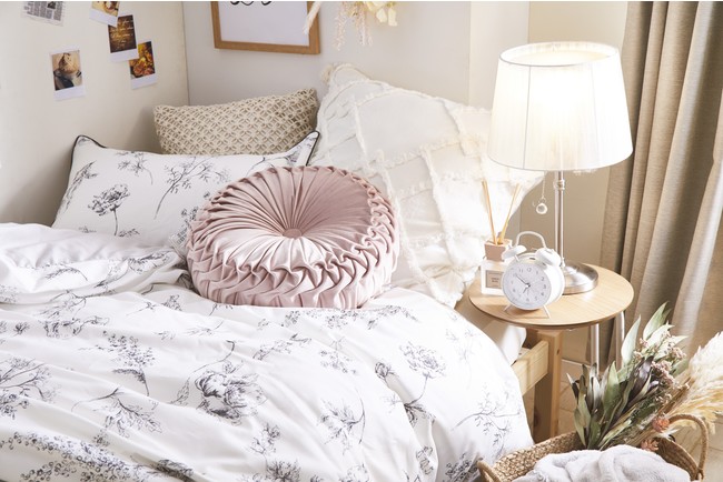 デコホームの新シリーズはフラワーラインアートがプリントされた春らしいアイテム。ピンクやグリーンなど春らしいカラーを差し色として追加すれば、より可愛く華やかなお部屋に仕上がります。