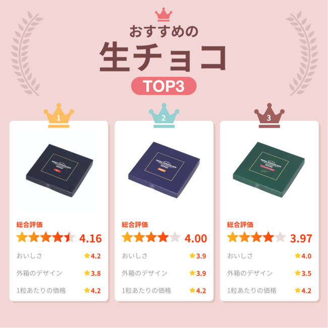 自分用・プレゼント用両方で最も人気が高かった生チョコ18商品を徹底比較。実際にすべて食べ比べ、「おいしさ」と「外箱のデザイン」・「1粒あたりの価格」の3つの観点から生チョコをランキング付けしました。