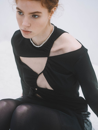 海の女神“calyso”をイメージしたネックレスは、パールのもつ有機的なフォルムをいかして。黒い糸に0.5cmのパールを通し、粒と粒との間があくよう糸を結び、パールの形を際立たせ、穏やかな波のような線を表現。黒い糸と白いパールとのコントラストで、ベーシックなパールネックレスとはひと味違うモードな雰囲気に。黒のコーディネートを相性のいい、シックな1本です。