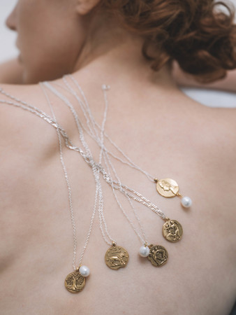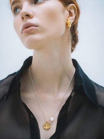 「才能」や「協力」の象徴である“ジェミニ”(=双子)をモチーフにしたコインネックレスは、周囲との調和を保ちつつ個性を発揮したいときに。繊細で平面的なシルバー925製チェーン、天然のバロックパールをひと粒添えることで、デイリーはもちろん少し華やかなシーンにもマッチします。