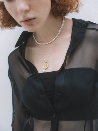 神聖さの象徴“マリア”をモチーフにしたコインネックレスは、なにか新しいことをはじめる人へ。細かい小判型のシシルバー925製チェーン、天然のバロックパールをひと粒添えることで、清潔感を後押し。