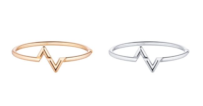 ルイ・ヴィトンが誇る卓越したサヴォアフェール(匠の技)がさまざまなテクスチャーに反映され、繊細さと洗練が見事に融合されたコレクション。イニシャルに刻まれた窪みにより、ゴールドの輝きがさらに強調されています。「LV ヴォルト」コレクションのすべてに、2つのイニシャルを通して情熱の炎が燃え上がり、グラフィカルに表現された歓喜と、デザインに比喩的に落とし込まれた目の覚めるような電流のパルスが心を躍らせます。