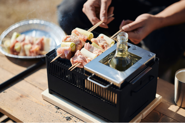 「+ Base」は串焼き・網焼き・鉄板焼き・煮込み・蒸し・燻製・熱燗など本格的な調理を一台で行うことができるオールインワン炭焼き器です。卓上に置けるコンパクトなモジュール構造とお手入れしやすい機能的デザインによって、キャンプはもちろん庭先でも手軽に使うことができます。「大切な人と過ごす時間」「一人でくつろぐひと時」…贅沢な体験を提供してくれるアイテムです。