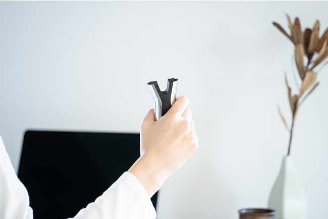 握って腕を動かすことで肩周りをケアする新感覚ストレッチツールです。従来のトレーニンググッズにはないデザイン性で、インテリアとしても飾ることができます。材質には、自動車にも使われる工業用ゴムを使用し、力みが出にくい5-10kgの適度な握力で握れる硬さと動かしやすさを実現しました。デスクに座ったままできる、オリジナルのストレッチメニューも開発しています。
