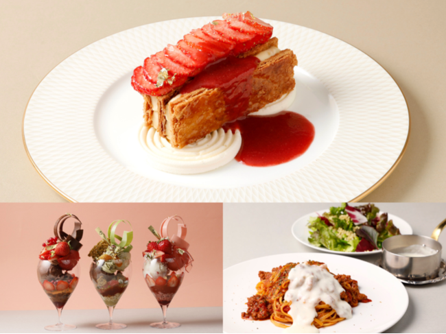「季節のミルフィーユ イチゴ」は当店のスペシャリテ。店内で焼き上げのパイ生地に、バニラが香るクリームを合わせました。苺には「とちおとめ」「レッドパール」「章姫」の3種を掛け合わたスイーツ苺「いばらキッス」を使用。そのほか、様々なパフェもお楽しみいただけます。「イチゴガリ」は、いばらキッスを主役に使った苺づくしのパフェ。お花畑にいるようなオリジナルドリンクとのペアリングをお楽しみいただけます。「ラブソディー」は、 季節の苺と41%のオリジナルクーベルチュールを合わせたパフェです。デリーモの全てを味わい尽くせる新店舗にぜひご期待ください。