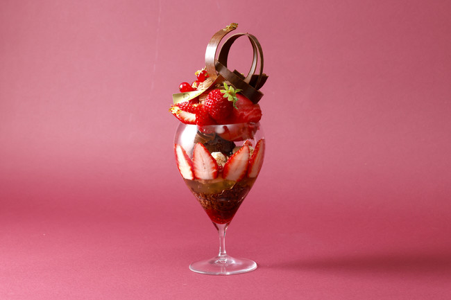 自由奔放な愛をテーマに、季節の苺と41%のオリジナルクーベルチュールを使ったショコラベリーパフェです。濃厚なチョコレートに、ほんのり上品なラベンダーが香ります。別添えのショコラソースをかけて、とろける様な幸せな時間をお楽しみください。