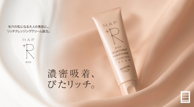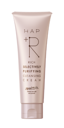 VOCE月間ランキング2022年1月クレンジング部門1位を獲得した「ハップアール リッチクレンジングクリーム」は、 「アパリン」の他にサトウキビ由来のスクワラン※3も配合したクレンジング洗顔料です。毛穴汚れも乾燥も気になる肌のために、成分を吟味し、250回以上の試作を重ね、約2年の開発期間を経て誕生しました。 濃密なクリームが肌に密着し、メイクだけでなく酸化した皮脂などの毛穴汚れの原因も落としますが、うるおいに必要な皮脂を残しながらクリアでやわらかな肌に洗い上げます。