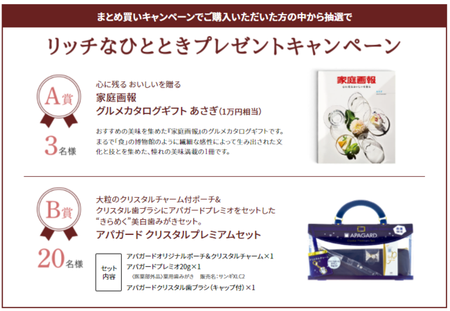 【特典】まとめ買い対象商品をご購入いただいた方の中から抽選で、リッチなひとときを味わえる賞品をプレゼント。