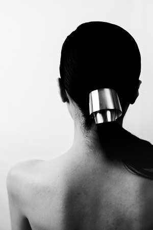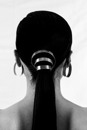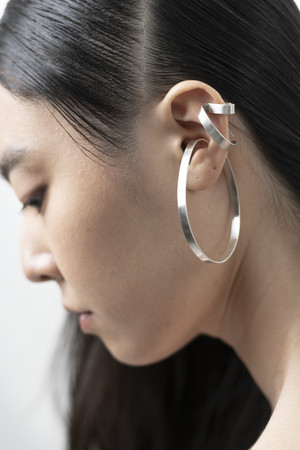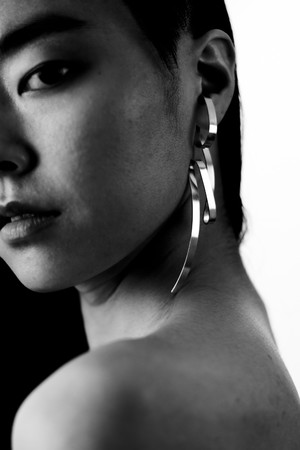 面と線を活かした潔いシェイプのヘッドコーム、まとめ髪にフックで留めるだけでモードなスタイルになるヘッドアクセサリー、何連もの輪を付けているように見える大胆なフォルムの片耳イヤーカフ、シンプルだからこそ強い印象付けができるイヤーカフを受注生産で販売します。