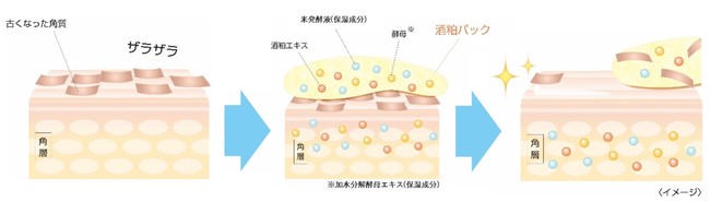 酒粕=酒粕エキス(保湿成分)配合 ※1 古い角質 ※2 ワフードメイド SKパック Nと比較して ※3コメヌカスフィンゴ糖脂質(保湿成分)