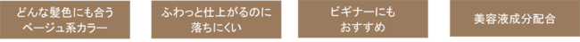 肌なじみのよいカラーだから、黒髪~明るい髪色までどんな髪色にも合います。