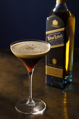 エスプレッソマティーニは本来ウォッカをベースに作られますが、ベースをブルーラベルにすることで、コーヒーの香りと、ブルーラベル原酒の樽由来の香ばしい香りがとてもマッチし、長い余韻が楽しめます。しっかりとシェークし、カクテルにフォームを作ることで、柔らかいテクスチャーのカクテルに仕上がっております。