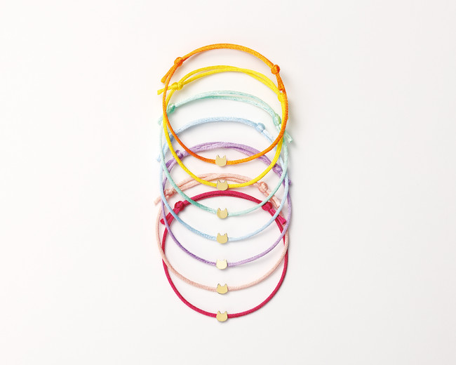 まんまるなお顔がキュートなネコのコードブレスレット。