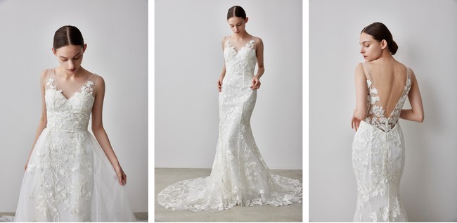 正統派なAラインでありながらそのバックスタイルのギャップに誰もが魅了される1着に仕上がりました。