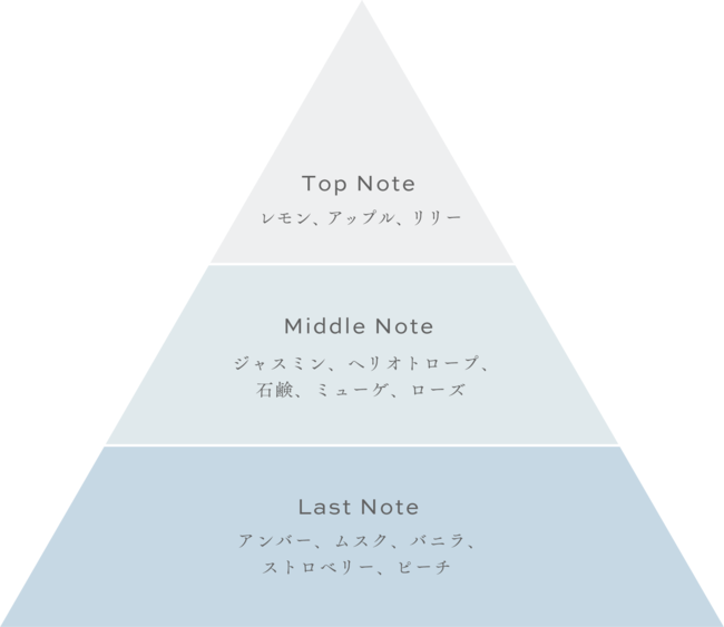 Last Note:アンバー、ムスク、バニラ、ストロベリー、ピーチ