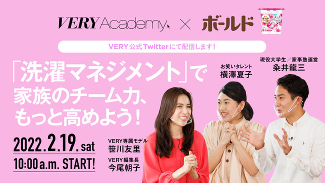 『VERY』専属モデルの笹川友里さん、2児の母でもあるタレントの横澤夏子さんなどゲストと一緒に「洗濯マネジメント」について考えるコンテンツをオンラインで2月中旬に配信予定。家族みんなで取り組むことで、皆さんの中で習慣化していた洗濯プロセスの無駄を見直すきっかけにも!
