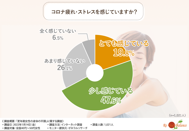 ここまでの調査で、6割以上がコロナ疲れやストレスを感じ、3割以上の方がコロナ禍で体調の変化を感じていることが分かりました。