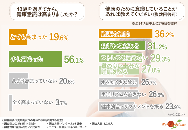 【7割以上が40歳を過ぎて健康意識が高まったと回答!】健康のために意識していることとは?
