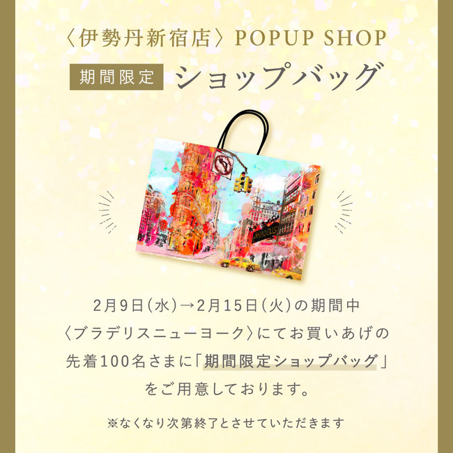 期間中、ブラデリスニューヨークにてお買い上げの方に先着順で「期間限定ショップバッグ」をご用意しております。