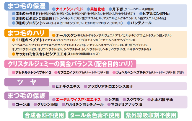 そしてスキンケア商品に配合しているこだわりの保湿/美容成分をマスカラにも配合。