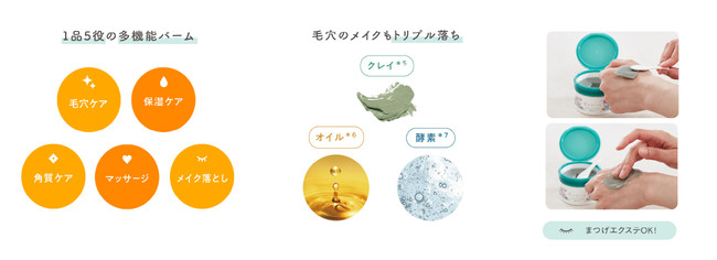 ●クレイ*5×オイル*6×酵素*7でしっかりメイクオフ
