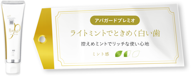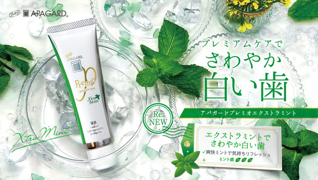 カラーは上品でリッチな色合いのゴールドグリーンに変更。ボディコピーは「プレミアムケアでさわやか白い歯」にリフレッシュ。さらに、シリーズ1番人気である「アパガードプレミオ」と今回リニューアルしたすっきりミントフレーバー「アパガードプレミオエクストラミント」のプレミアムタイプ2品の中から、自分にあったプレミオを選んでいただく“選ぶ楽しさ”も提案していきます。