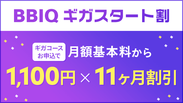 本キャンペーンの詳細につきましては、当社のBBIQ申し込みサイトをご覧ください。