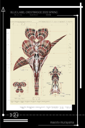今回の村山誠氏とのコラボレーションは、「BLUE LABEL CRESTBRIDGE」のアイコン“クレストブリッジチェック”と村山氏が得意とする植物画を融合。植物を建築図面のように緻密に描き出し、その形や構造を精密にCG画に落とし込んだ作品は、有機的な植物と無機的なデジタルアートを融合した唯一無二のグラフィックに仕上がっています。
