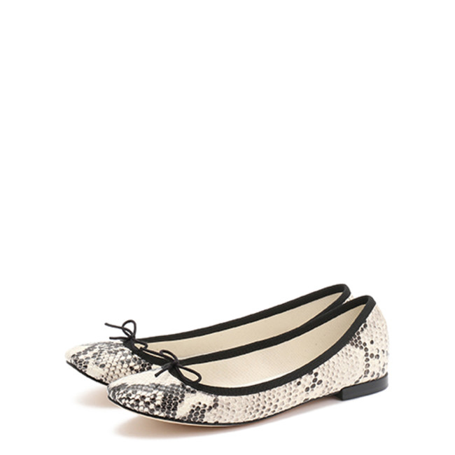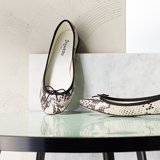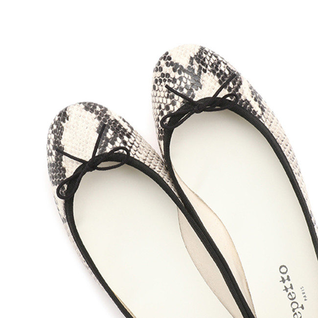 (株)ルックが展開するRepetto(レペット)2022 Spring Summer Collectionより、アイコニックなフラットバレリーナ“Cendrillon(サンドリオン)”にエキゾチックなパイソンエフェクトを施した日本限定モデルを発売致します。フロントのリボンディテールでレペットならではのフェミニティを残しつつ、ブラック&ホワイトのカラーコントラストが春の装いにモダンなエッセンスを与えてくれます。洗練された大人の足元へと導いてくれる、エレガントなバレリーナシューズをお楽しみください。