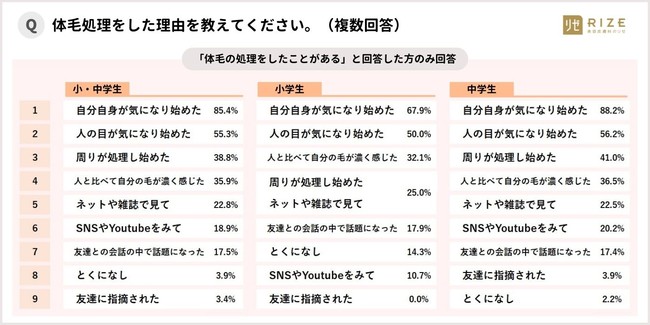 (※)【小・中学生の女性243名へ「体毛事情(脱毛)」を調査】:https://prtimes.jp/main/html/rd/p/000000064.000020081.html