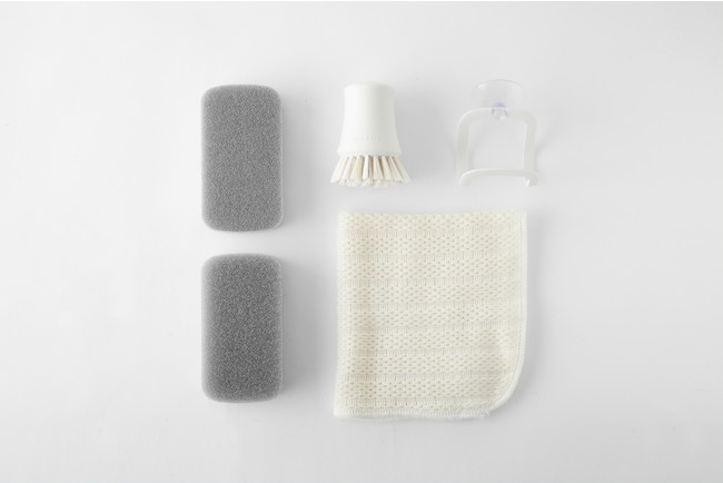 「清潔謹製」シリーズは、使い心地と佇まいの美しさを追求したキッチン清掃道具です。シリーズ名には、お使いいただいたお客様の暮らしが豊かになるよう「心を尽くしてつくる」といった意味が込められています。フライパンやザルが洗いやすい「抗菌キッチンブラシ」、泡立ちと水切れが良い「抗菌キッチンスポンジ」、程よいコシで泡立てやすい「抗菌キッチンスポンジ 3層」、スポンジを斜めに置けて水切れが良い「抗菌スポンジホルダー」、ふっくらとやわらかく手馴染みの良い「抗菌ふきん」の5アイテムを展開。全て抗菌剤入り(※2)で清潔にお使いいただけます。