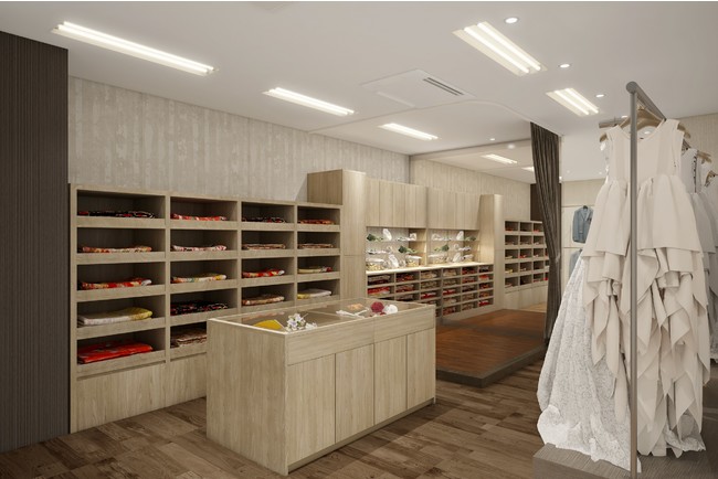 店内には、花嫁憧れのブランドコレクションから選りすぐりしたドレス「ANTONIO RIVA」のエクスクルーシブモデルや、当社独占契約ブランドの「LIHI HOD」「KELLY FAETANINI」「NICOLE MILANO」
